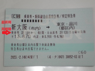 (例)3月13日 新大阪発〜東京着のチケットを3月5日に東京から使用する場合